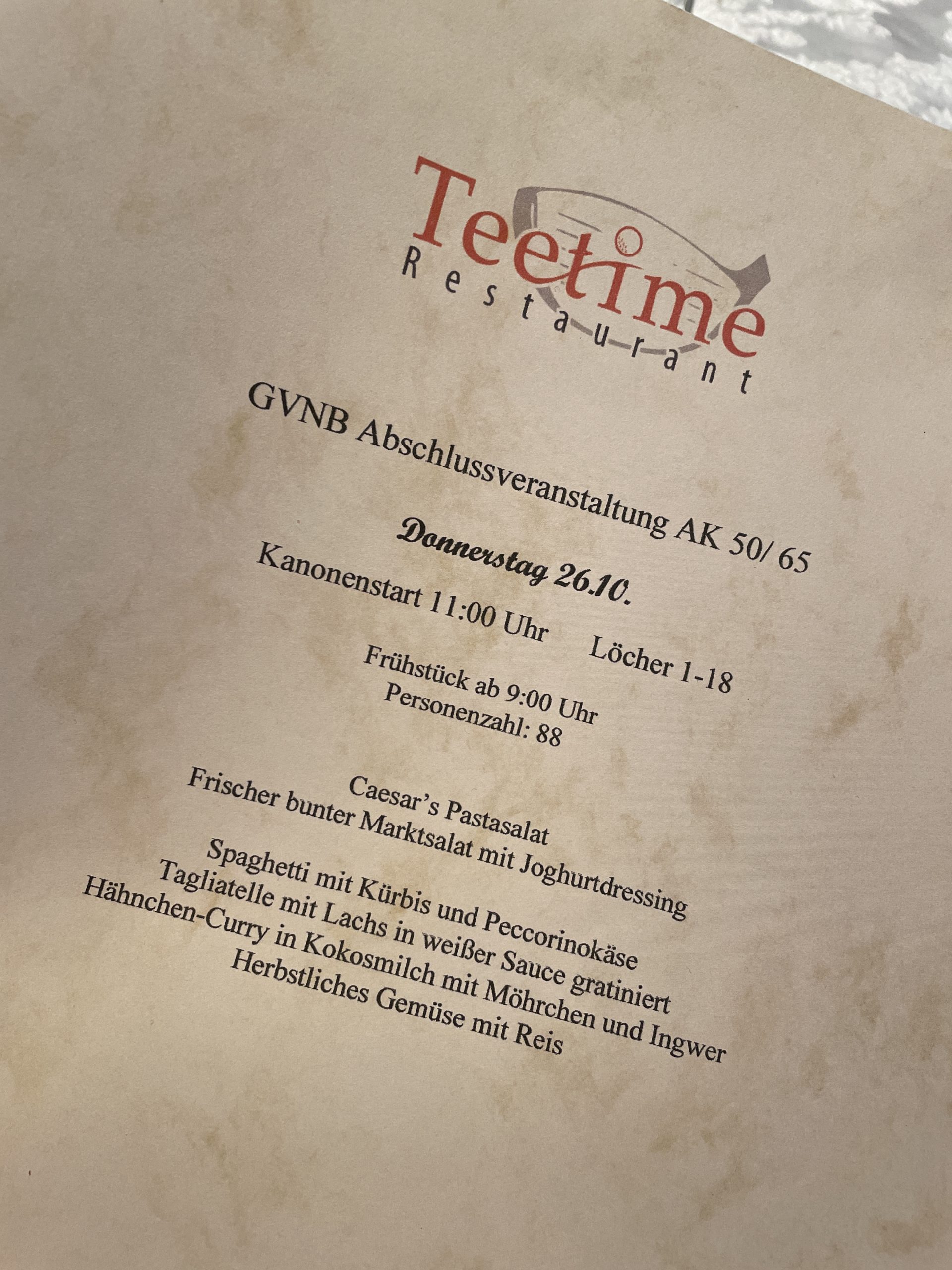 Die Gastronomie hatte ein schönes Frühstück bereit gestellt und die Menu Karte war verheißungsvoll für den Abend. Leider verlässt ja wohl die Gastronomie die Golfanlage in der Bremer Schweiz, dabei war gerade sie über die Landesgrenze das Aushängeschild.
