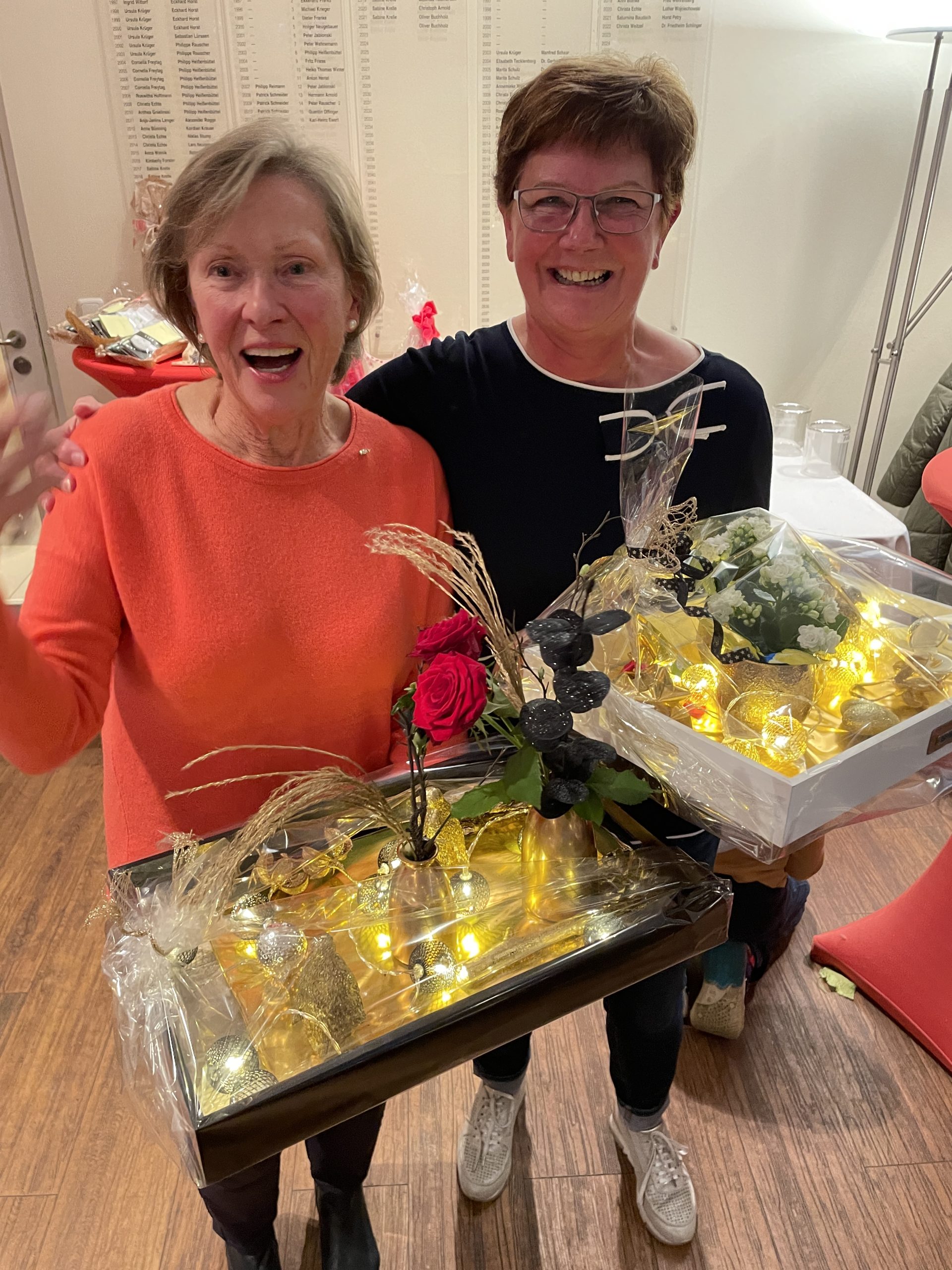 Und natürlich gab es für Charlotte auch einen herrlichen Blumenstrauß und ein Wellnesspaket, denn alle Ladies haben für die Leiterin der Seniorinnenliga gesammelt, und haben wirklich gerne ein kleines Dankeschön überreicht. Und Charlotte füllt daheim ja ihre Vasen immer mit Blumen und versorgt liebevoll ihren traumhaften Garten…