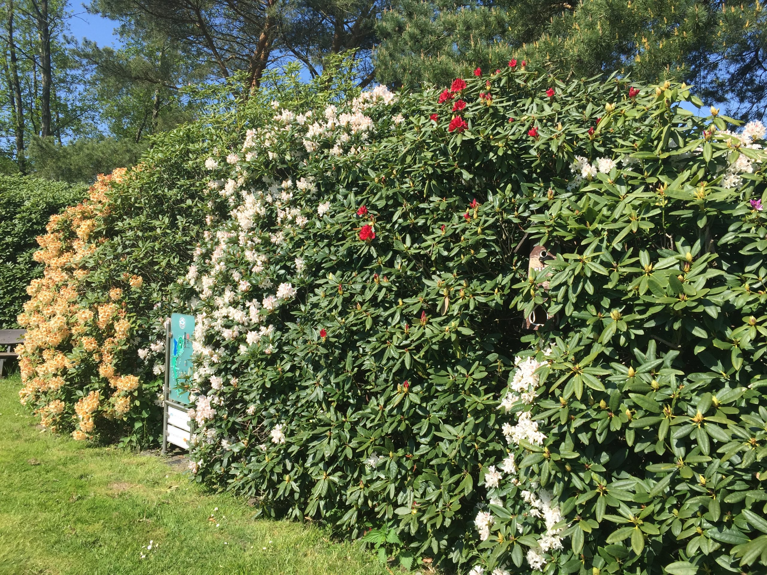Die Magnolia Lane ist die Strasse zum Eingangstor, mit über 60 Magnolien. Der gesamte Platz hat viele Rhododendren und Azalen, deren Blüten in Folie gehüllt und mit Wärmelampen behandelt werden, damit alle rechtzeitig zum Master blühen. Kahlstellen auf den Fairways oder Grüns (gibt es eigentlich nicht) werden mit Lebensmittelfarbe grün eingefärbt, das Wasser wird blau nachgefärbt, und unter den Bäumen liegen rotbraun eingefärbte Fichtennadeln statt schnödem Rindenmulch. Der Sand in den Bunkern glitzert leuchtend weiß und bildet einen Kontrast zum perfekten Drumherum. Anfangs ein Abfallprodukt, ist der Quarzsand heute in dieser exzellenten Körnung kaum noch zu bezahlen. Naja, für Augusta schon….